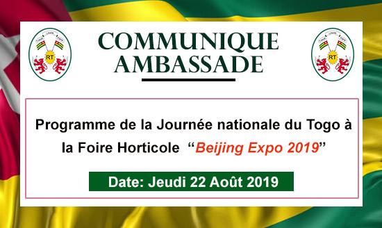 Programme de la Journée nationale du Togo à la Foire Horticole Beijing Expo 2019